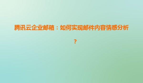 邮件内容情感分析的重要性 在数字化沟通时代,邮件作为企业内外交流的核心工具,承载着大量关键信息。然而,文字表达的情感倾向往往难以通过人工快速识别,可能影响客户关系维护或内部协作效率。腾讯云企业邮箱...