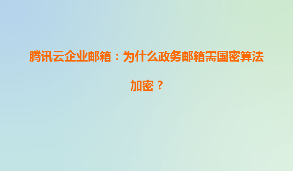 2025-04-30腾讯云企业邮箱:为什么政务邮箱需国密算法加密? 一、政务邮箱的特殊性与安全挑战 政务邮箱承载政府机构核心业务数据与敏感信息,其安全性直接影响国家安全和社会稳定。近年来针对政府部门的网络攻击...
