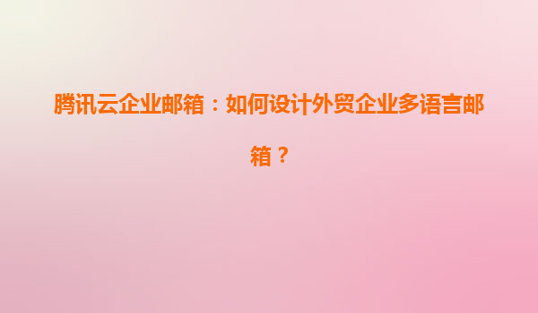 2025-04-30腾讯云企业邮箱:外贸企业多语言邮箱设计全解析 一、外贸企业多语言邮箱的核心需求 随着全球化进程加速,外贸企业对多语言邮箱的需求呈现以下特征:需支持多语种界面切换、国际化域名兼容性、全球邮件收发...
