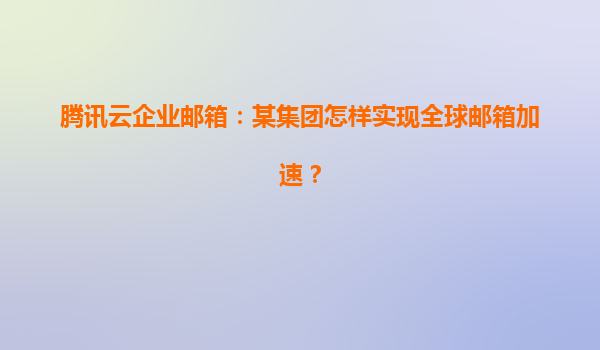 2025-04-28腾讯云企业邮箱:某集团如何实现全球邮箱加速? 一、全球邮箱加速的核心挑战 跨国企业面临邮件传输延迟、跨境网络波动、多地访问速度差异等问题。以某集团为例,其在亚洲、欧洲、美洲设有分支机构...