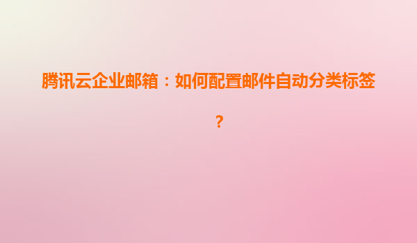 腾讯云企业邮箱:如何配置邮件自动分类标签? 一、为什么需要邮件自动分类标签? 随着企业日常通信量的增加,高效管理邮件成为提升工作效率的关键。腾讯云企业邮箱通过智能分类标签功能,可自动将...