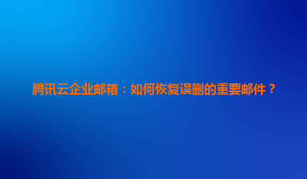 2025-04-28腾讯云企业邮箱:如何恢复误删的重要邮件? 一、误删邮件的常见场景与恢复必要性 在日常工作中,误删重要邮件是许多企业员工可能遇到的问题。无论是操作失误、系统误判,还是邮箱迁移过程中的数据...