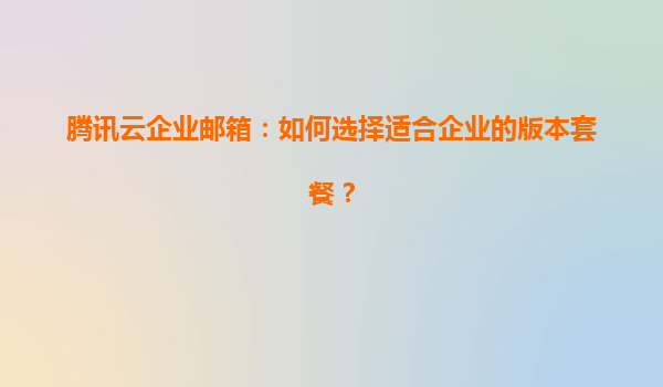 2025-04-27腾讯云企业邮箱:如何选择适合企业的版本套餐 企业邮箱的重要性与选择标准 在数字化办公时代,企业邮箱不仅是内外沟通的核心工具,更是企业品牌形象与信息安全的重要载体。选择适合的邮箱版本需综合考...