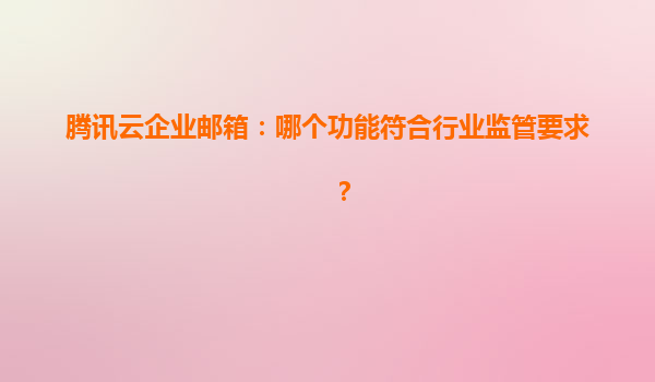 2025-04-24腾讯云企业邮箱:哪些功能满足行业监管要求? 一、行业监管的核心需求与挑战 在金融、医疗、政务等强监管行业,企业邮箱需满足数据安全、隐私保护、审计追踪等硬性要求。例如: ...