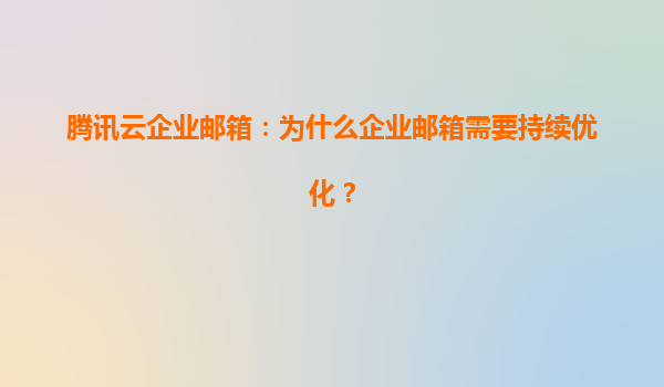 2025-04-24腾讯云企业邮箱:为什么企业邮箱需要持续优化? 一、企业邮箱:企业数字化沟通的核心工具 企业邮箱不仅是员工日常沟通的载体,更是企业品牌形象、数据安全和协作效率的重要体现。随着数字化转型加速,企业...