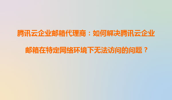 腾讯云企业邮箱代理商专业指南:高效解决网络访问难题 网络环境差异引发的访问问题解析 在日常使用腾讯云企业邮箱时,部分用户可能因办公场所网络策略、跨境访问或本地DNS解析等因素,遇到无法正常登录邮箱...