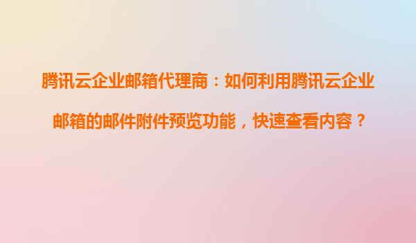 2025-11-03腾讯云企业邮箱代理商:如何利用腾讯云企业邮箱的邮件附件预览功能快速查看内容? 一、腾讯云企业邮箱的核心优势 腾讯云企业邮箱作为国内领先的企业级邮件服务,凭借腾讯云强大的技术支撑...