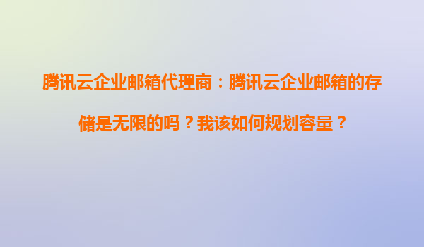 2025-11-03腾讯云企业邮箱代理商:腾讯云企业邮箱的存储是无限的吗?我该如何规划容量? 随着企业数字化转型的加速,高效、安全的企业邮箱成为企业通信和协作的核心工具。腾讯云企业邮箱凭借其稳定性和丰富的功能,备...