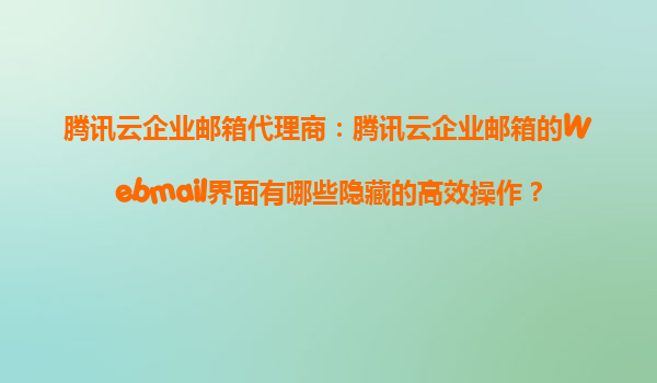 2025-11-03腾讯云企业邮箱代理商:如何利用腾讯云企业邮箱自定义邮件分类标签? 一、腾讯云企业邮箱的核心优势 腾讯云企业邮箱作为一款面向企业级用户的高效邮箱解决方案,具备以...