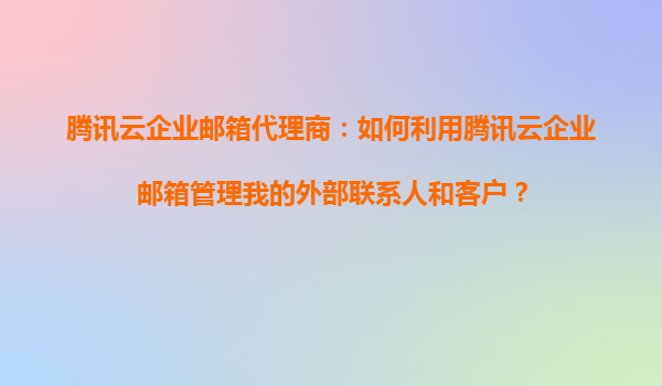 2025-11-03腾讯云企业邮箱代理商指南:高效管理外部联系人与客户 腾讯云企业邮箱的核心优势 腾讯云企业邮箱作为一款专业的企业级邮件服务,不仅提供稳定的邮件收发功能,更融合了腾讯云在安全、存储及协同办公领...
