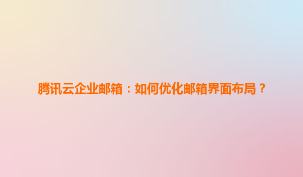 2025-04-24腾讯云企业邮箱:如何优化邮箱界面布局以提升用户体验? 一、界面布局优化的核心目标 企业邮箱作为日常沟通的重要工具,其界面布局直接影响用户的使用效率和体验。腾讯云企业邮箱通...