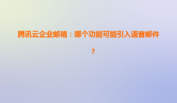 2025-04-23腾讯云企业邮箱:语音邮件功能的潜在应用场景与技术优势分析 一、语音邮件的市场价值与用户需求 在远程办公场景渗透率达78%的数字化时代(IDC2023数据),企业通信工具正面临三大核心诉求: 1...