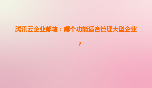 2025-04-21腾讯云企业邮箱:大型企业高效管理的核心功能解析 一、为什么大型企业需要专业级邮箱系统? 在数字化办公场景下,大型企业面临着组织架构复杂、信息安全风险高、跨部门协作频繁等挑战。传统邮箱系统在...