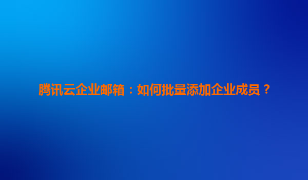 2025-04-21腾讯云企业邮箱:高效管理企业成员的批量添加指南 一、腾讯云企业邮箱的核心优势 腾讯云企业邮箱凭借其强大的技术实力与丰富的企业服务经验,成为众多企业数字化办公的首选工具。其核心优势包括: ...