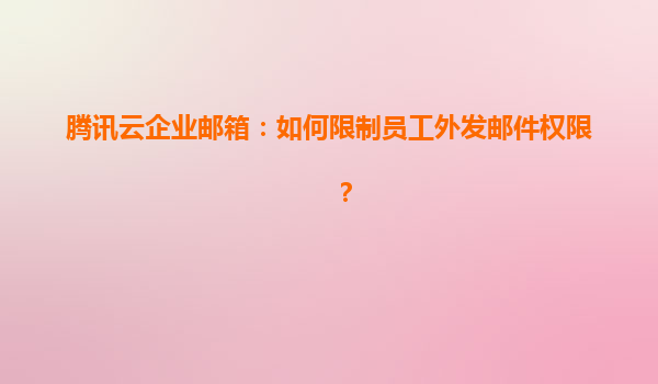 2025-04-21腾讯云企业邮箱:如何限制员工外发邮件权限? 一、企业邮件外发权限管控的重要性 在数字化办公场景中,企业邮箱是核心沟通工具之一。然而,员工随意外发敏感邮件可能导致数据泄露、商业机密外流等风险...