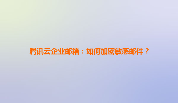 2025-04-21腾讯云企业邮箱:如何加密敏感邮件? 在数字化办公时代,企业邮件作为核心沟通工具,承载着大量敏感信息。如何确保邮件内容的安全性,防止数据泄露,成为企业IT管理的重要课题。腾讯云企业邮箱凭借...