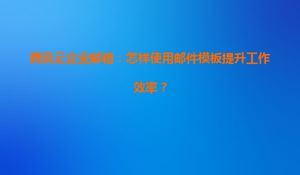 2025-04-21腾讯云企业邮箱:如何通过邮件模板提升工作效率? 一、为什么需要邮件模板? 在日常工作中,企业员工经常需要重复发送格式相似或内容固定的邮件,例如:客户跟进、通知公告、营销推...