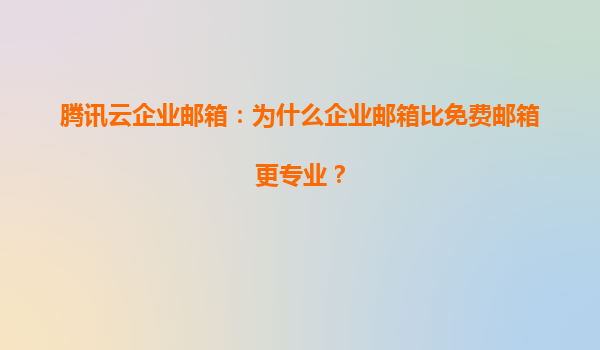 2025-04-21腾讯云企业邮箱:团队协作的智能化解决方案 引言:企业协作的痛点与需求 在数字化办公时代,团队协作效率直接影响企业竞争力。传统邮箱系统常面临权限混乱、信息孤岛、沟通延迟等问题。腾讯云企业邮箱...
