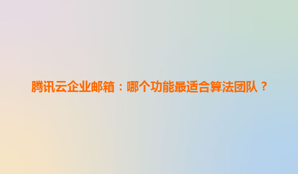 2025-04-20腾讯云企业邮箱:算法团队高效协作与数据安全的理想选择 一、算法团队的独特需求与挑战 算法团队在日常工作中需要处理大量代码文件、模型数据和技术文档,对邮件系统的大文件传输能力、数据安全性和跨...
