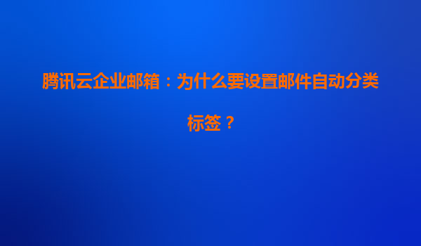 2025-04-18腾讯云企业邮箱:智能化邮件管理,助力企业高效沟通 一、邮件自动分类标签的核心价值 在数字化办公时代,企业每天需处理大量邮件,从客户沟通到内部协作,信息繁杂且优先级各异。腾讯云企业邮箱的...