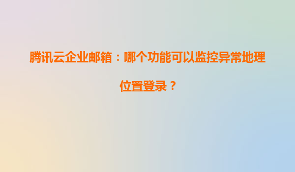 2025-04-18腾讯云企业邮箱:如何通过「异地登录提醒」功能保障企业邮箱安全? 一、企业邮箱安全的核心挑战 在全球化办公趋势下,企业成员可能在不同地区登录邮箱,但异常地理位置登录(如跨国IP、非常用设备...
