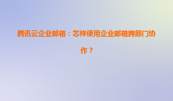 2025-04-18腾讯云企业邮箱:如何高效实现跨部门协作? 一、企业跨部门协作的痛点与需求 在企业日常运营中,跨部门协作常面临以下问题: 1.信息传递效率低,邮件容易遗漏或延迟; 2.权限管理混乱...