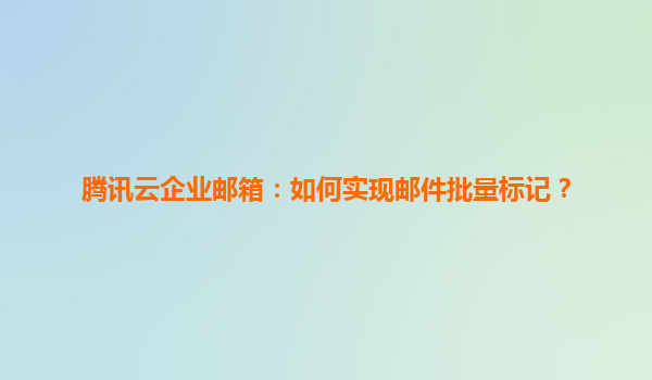 2025-04-17腾讯云企业邮箱:如何高效实现邮件批量标记? 一、为什么需要邮件批量标记? 随着企业日常沟通的电子化,邮箱已成为重要的信息管理工具。面对海量邮件,如何快速分类、标记和归档成为痛点。腾讯云...
