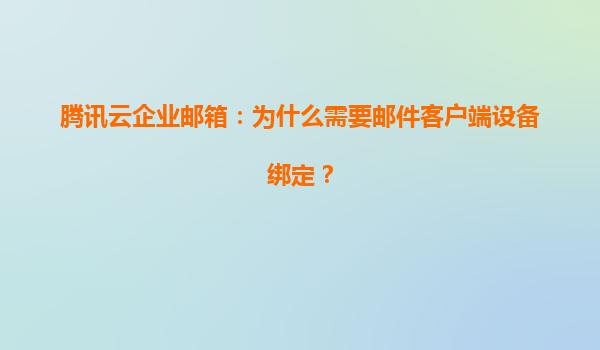 2025-04-17腾讯云企业邮箱:为什么需要邮件客户端设备绑定? 一、设备绑定的必要性 在企业日常运营中,电子邮件是核心沟通工具之一,承载着敏感数据和关键业务信息。为保障信息安全,腾讯云企业邮箱推出设备绑定功能...