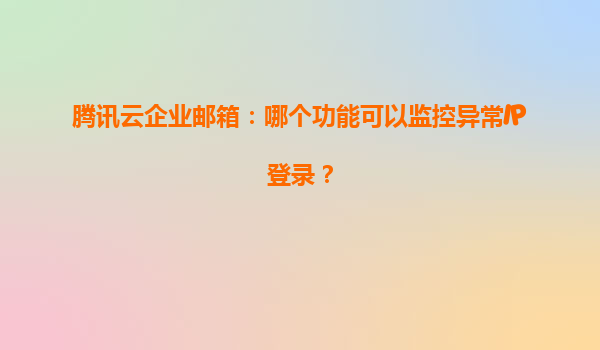 2025-04-17腾讯云企业邮箱如何通过异常IP登录监控保障企业安全 企业邮箱安全的重要性 在数字化办公时代,企业邮箱不仅是沟通工具,更是承载商业机密、客户信息的重要载体。腾讯云企业邮箱凭借其强大的安...