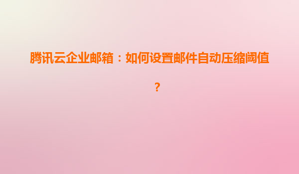 2025-04-16腾讯云企业邮箱:如何设置邮件自动压缩阈值? 一、为什么需要设置邮件自动压缩? 随着企业邮件往来日益频繁,邮箱存储空间占用快速增长可能导致运营成本上升和效率降低。腾讯云企业邮箱的自动...