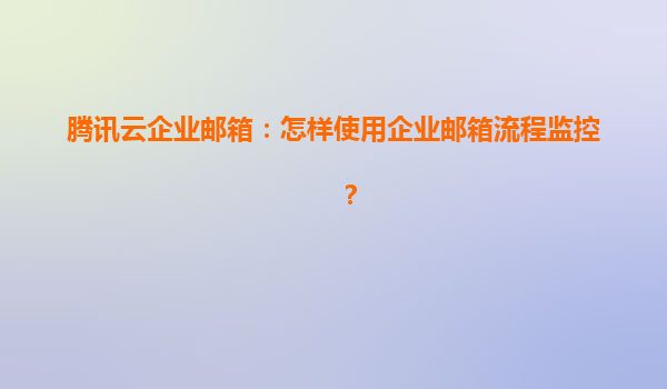 2025-04-16腾讯云企业邮箱:如何高效使用流程监控功能 一、企业邮箱流程监控的核心价值 在数字化办公场景中,企业邮箱不仅是沟通工具,更是业务流转的重要枢纽。腾讯云企业邮箱的流程监控功能通过以下能力助...