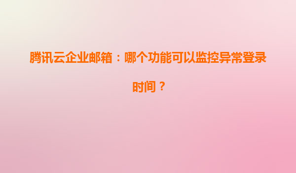 2025-04-16腾讯云企业邮箱:如何通过「登录行为审计」功能监控异常登录时间? 一、企业邮箱安全的核心挑战 随着数字化转型加速,企业邮箱已成为商务沟通的核心工具,但随之而来的账号盗用、异常登录等安全问...