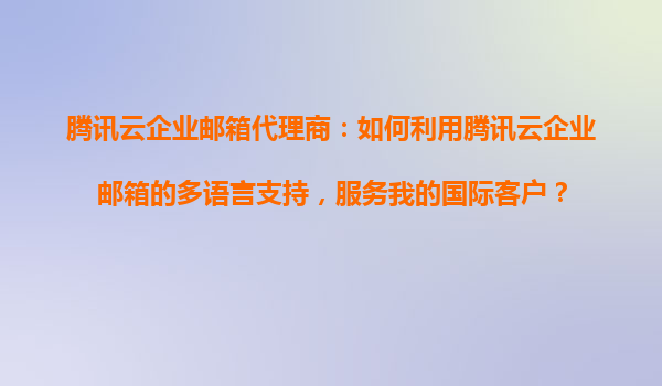 2025-11-02腾讯云企业邮箱代理商:如何利用腾讯云企业邮箱的多语言支持服务国际客户 在全球化的商业环境中,企业邮箱不仅是日常沟通的工具,更是企业形象和专业性的重要体现。作为腾讯云企业邮箱的代理商,如何利用其强大...