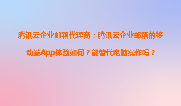 腾讯云企业邮箱代理商分析:腾讯云企业邮箱的移动端App体验如何?能替代电脑操作吗? 一、腾讯云企业邮箱移动端App的综合体验 腾讯云企业邮箱作为国内领先的企业级邮箱服务,其移动端App在功能和体验...