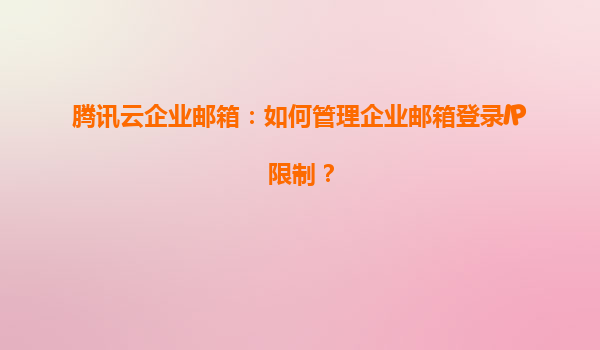 2025-04-09腾讯云企业邮箱:如何管理企业邮箱登录IP限制? 一、企业邮箱登录IP限制的核心意义 企业邮箱作为日常办公的核心工具,其安全性直接影响企业数据资产。通过设置登录IP限制,企业可有效防止以下风险: ...