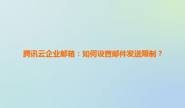 腾讯云企业邮箱:邮件发送限制设置指南 一、邮件发送限制的重要性 在企业日常运营中,邮件作为核心沟通工具,其安全性与稳定性直接影响业务效率。为避免账号被滥用、防止垃圾邮件泛滥或误发敏...