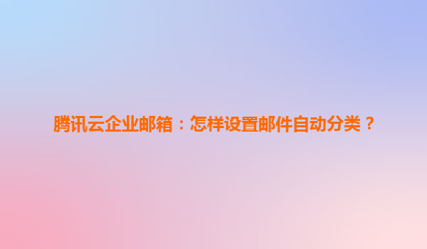 2025-04-07腾讯云企业邮箱:如何高效设置邮件自动分类? 一、为什么邮件自动分类对企业至关重要? 在数字化办公场景中,企业邮箱日均处理数十甚至上百封邮件已成为常态。通过智能分类功能,可将客户询价自动归档至"销...