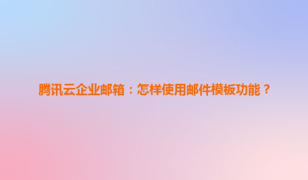 2025-04-06腾讯云企业邮箱邮件模板功能详解 一、邮件模板功能的核心价值 在高效的企业沟通场景中,腾讯云企业邮箱的邮件模板功能通过标准化内容框架,帮助用户节省重复编辑时间,降低人为操作失误风险。该功能尤其适...