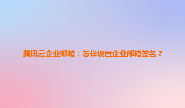 腾讯云企业邮箱:如何设置企业邮箱签名? 一、为什么需要企业邮箱签名? 企业邮箱签名是专业形象的延伸,它不仅能在邮件末尾展示企业名称、联系方式等基础信息,还能通过统一的设计风格传递品牌价...