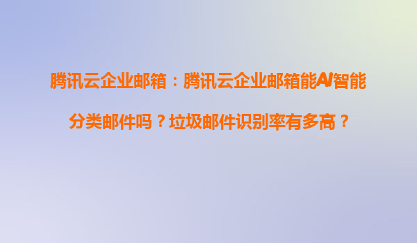 2025-04-03腾讯云企业邮箱:AI智能分类与高效垃圾邮件防护 一、腾讯云企业邮箱的核心优势 腾讯云企业邮箱作为一款面向企业的专业邮件服务,凭借其强大的技术能力和丰富的功能模块,在智能邮件管理、安全性及稳定...