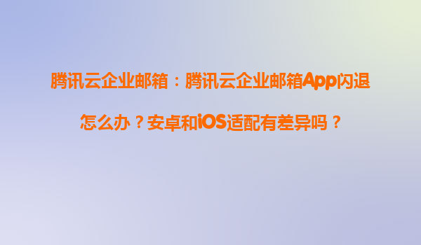 2025-04-03腾讯云企业邮箱App闪退问题解析与解决方案 作为企业高效协同办公的核心工具,腾讯云企业邮箱凭借其稳定性与安全性受到广泛认可。然而,部分用户在使用App时可能遇到闪退问题。本文将从技术适配、系统差异及解决...