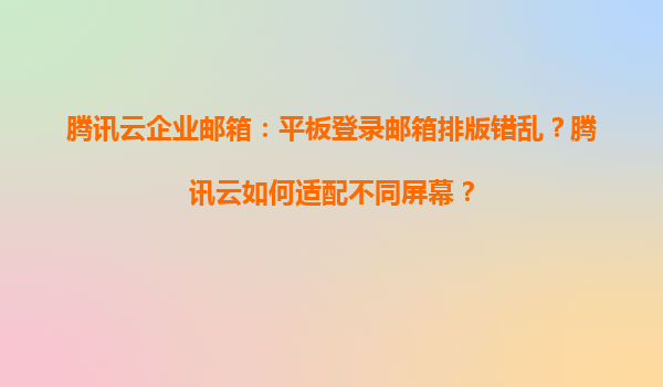 2025-04-03腾讯云企业邮箱多屏适配方案解析 一、智能响应式布局设计 腾讯云企业邮箱采用前沿的响应式网页设计(RWD)技术,通过动态CSS媒体查询自动识别平板设备的屏幕分辨率。当检测到用户...