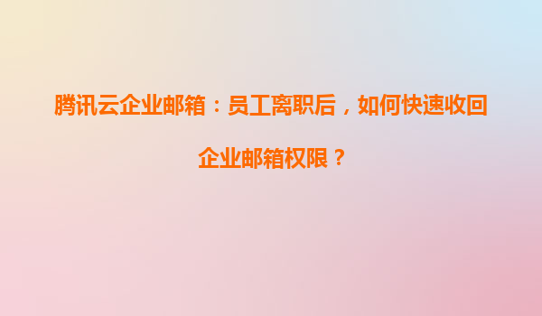 2025-04-01腾讯云企业邮箱:员工离职后如何快速收回企业邮箱权限? 一、员工离职账号管理的重要性 在企业日常运营中,员工离职是常见现象。若未能及时处理离职员工的邮箱权限,可能导致敏感数据泄...