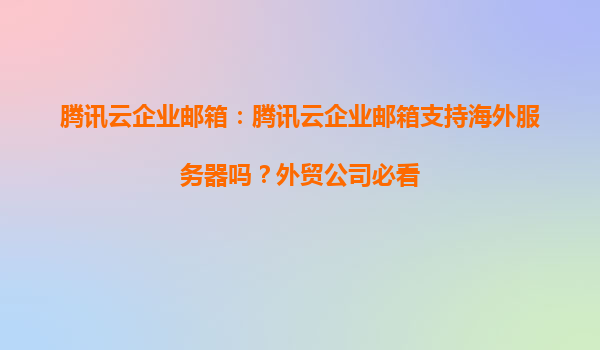 2025-04-01腾讯云企业邮箱:外贸公司拓展海外市场的可靠伙伴 一、腾讯云企业邮箱是否支持海外服务器? 腾讯云企业邮箱凭借其全球化服务器部署,为外贸企业提供无缝衔接的海外通信服务。其核心优势包括: ...