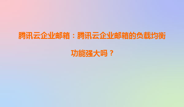 2025-04-01腾讯云企业邮箱:负载均衡功能的强大之处与生态优势 一、企业邮箱负载均衡的重要性 在数字化转型的背景下,企业邮箱作为核心通信工具,需应对高并发访问、海量数据处理和突发流量冲击。负载均衡技术通过智...