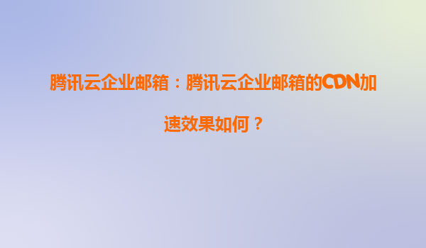 腾讯云企业邮箱:CDN加速效果与企业级优势解析 一、企业邮箱的CDN加速:为何成为刚需? 在全球化商业环境中,企业邮箱的访问速度和稳定性直接影响沟通效率。腾讯云企业邮箱通过自研CDN网络实现全球2000+加...