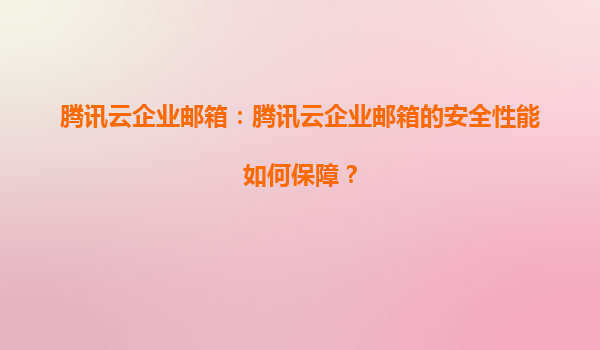 2025-04-01腾讯云企业邮箱:全方位安全性能保障解析 在数字化转型加速的今天,企业邮箱作为核心通信工具,其安全性直接关系到商业机密与数据资产的安全。腾讯云企业邮箱依托腾讯集团20余年...