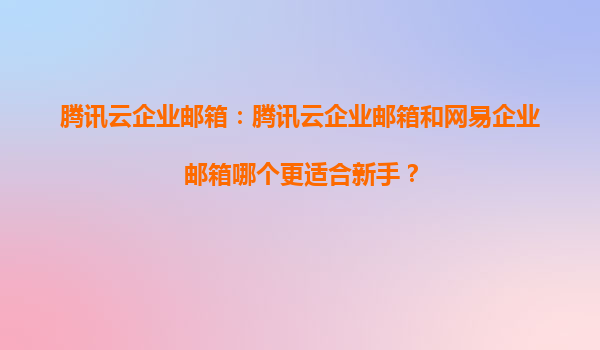 2025-03-31腾讯云企业邮箱vs网易企业邮箱:新手如何选择? 一、新手需求的核心痛点 对于初次接触企业邮箱的用户而言,操作简单性、快速上手能力、技术支持的响应速度是核心关注点。 腾讯...