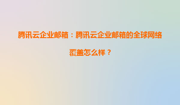 2025-04-01腾讯云企业邮箱的全球网络覆盖优势 在全球化商业环境下,企业通信的稳定性和高效性直接影响业务发展。腾讯云企业邮箱凭借其强大的全球网络覆盖能力,为跨国企业、跨境团队提供了无缝连接的邮箱服务体验。 ...