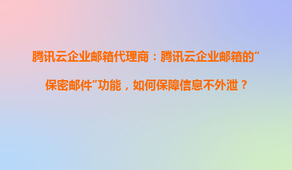 2025-10-28腾讯云企业邮箱“保密邮件”功能如何保障信息安全?全面解析代理服务优势 一、腾讯云企业邮箱的核心安全机制 腾讯云企业邮箱作为国内领先的商务通信解决方案,...